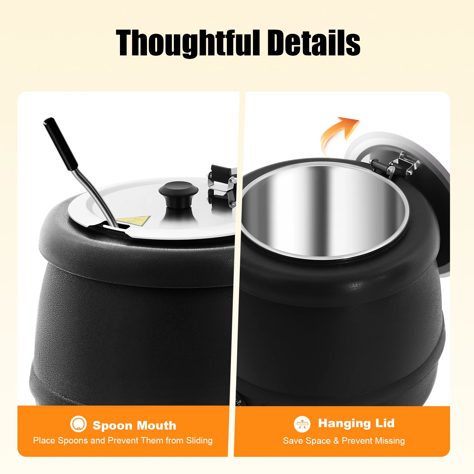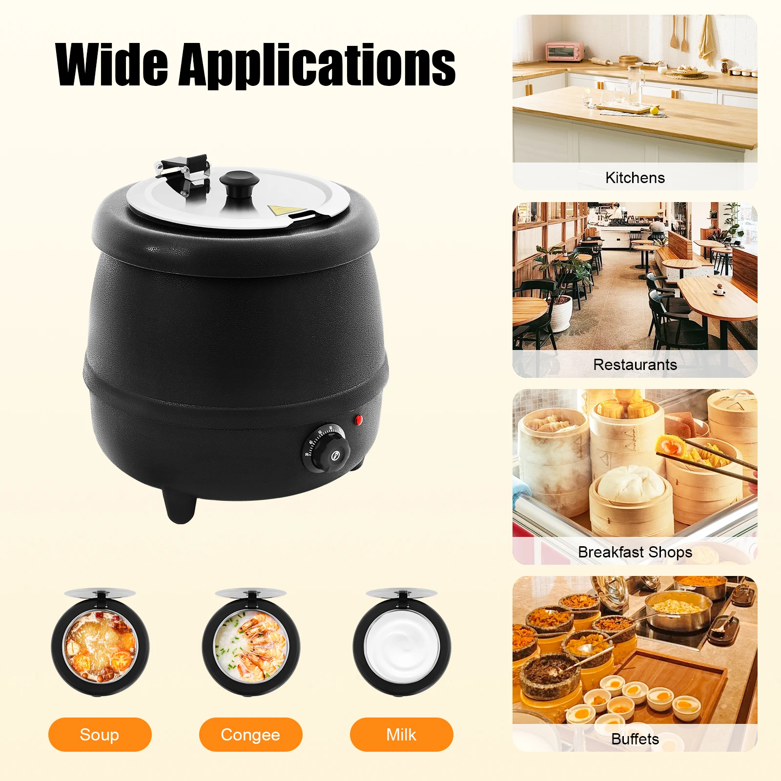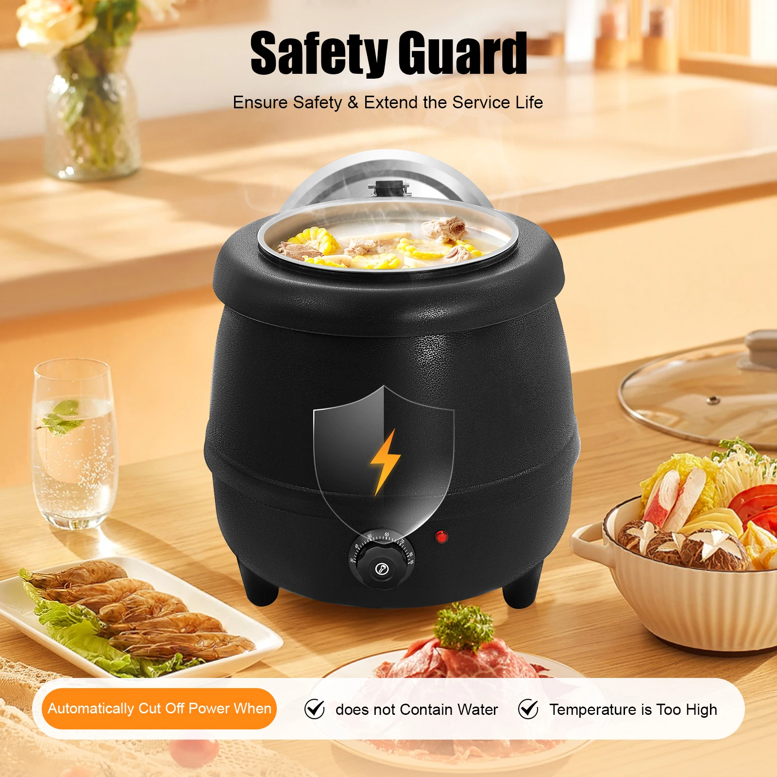 Olla Eléctrica para Sopa de Acero Inoxidable de 10L, 400W, con Aislamiento Térmico, Revestimiento Apto para Lavavajillas y Temperatura de 30-85°C ° Control C 13.78×14.17 pulgadas