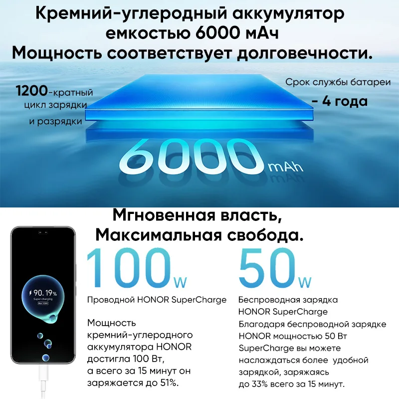Batería: 6000 mAh (valor típico),Supercargo de HONOR de 100 W, Carga inalámbrica de 50W;